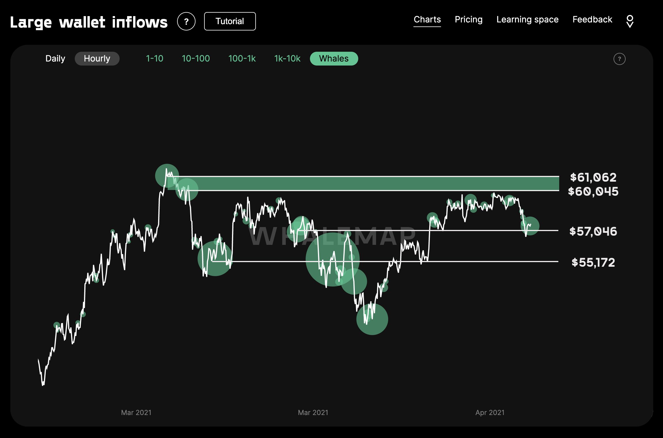 Theo các nhà nghiên cứu tại Whalemap, hai mức kháng cự quan trọng của Bitcoin trong thời gian tới là 60.045 USD và 61.062 USD. Vào ngày 31 tháng 3, các nhà nghiên cứu ghi nhận: