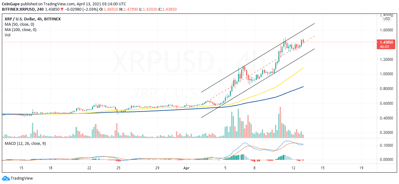 Ripple đang chuyển động trong một mô hình song song tăng dần, như được quan sát trên biểu đồ 4 giờ. Giữ trên khu vực quan trọng này sẽ đảm bảo rằng XRP vẫn ở trong quỹ đạo đi lên.